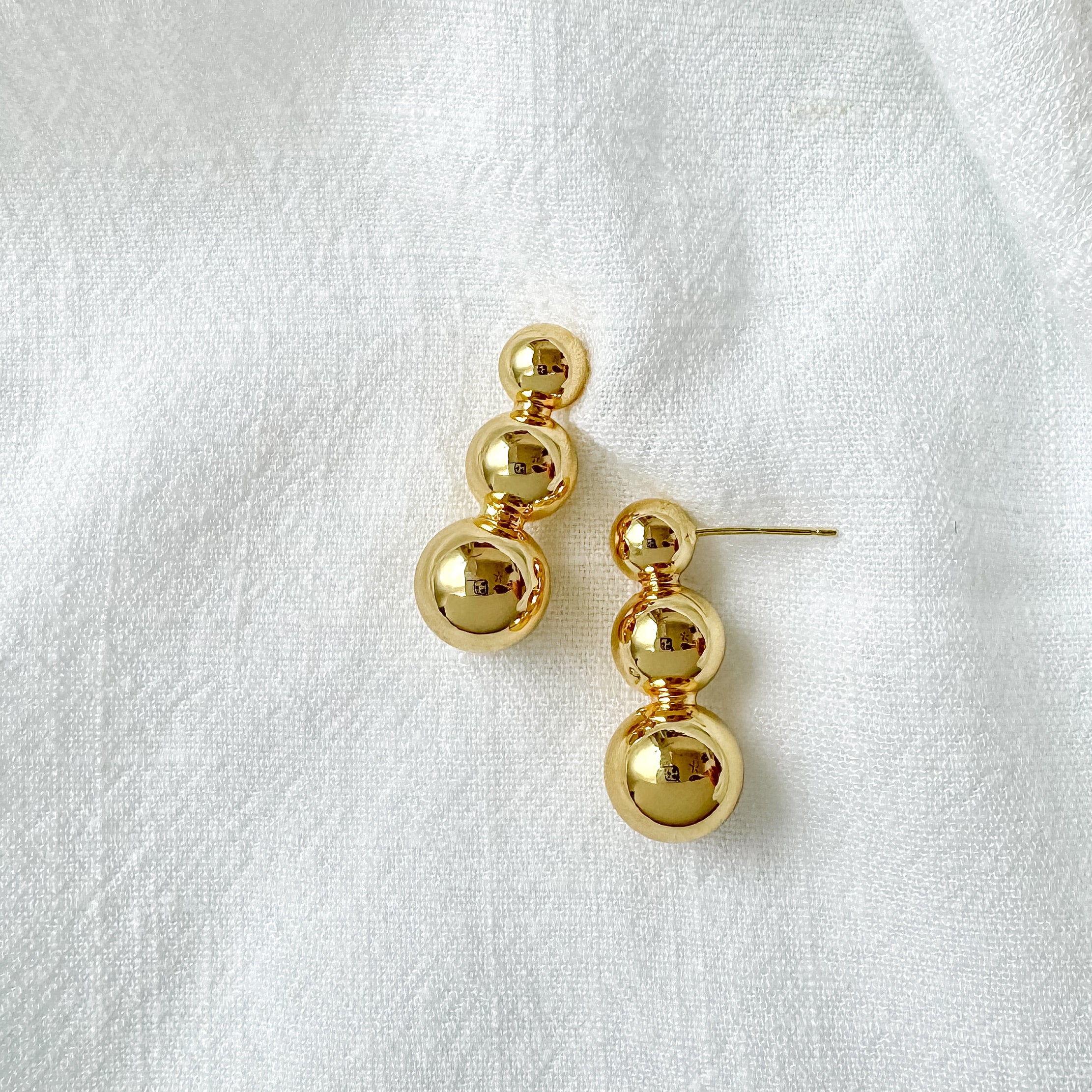 The Lyman Stud Earrings are a sculptural statement piece with three graduated spheres. They’re hypoallergenic and nickel-free. These bold studs elevate both casual and dressy looks with their dimensional form and radiant finish.