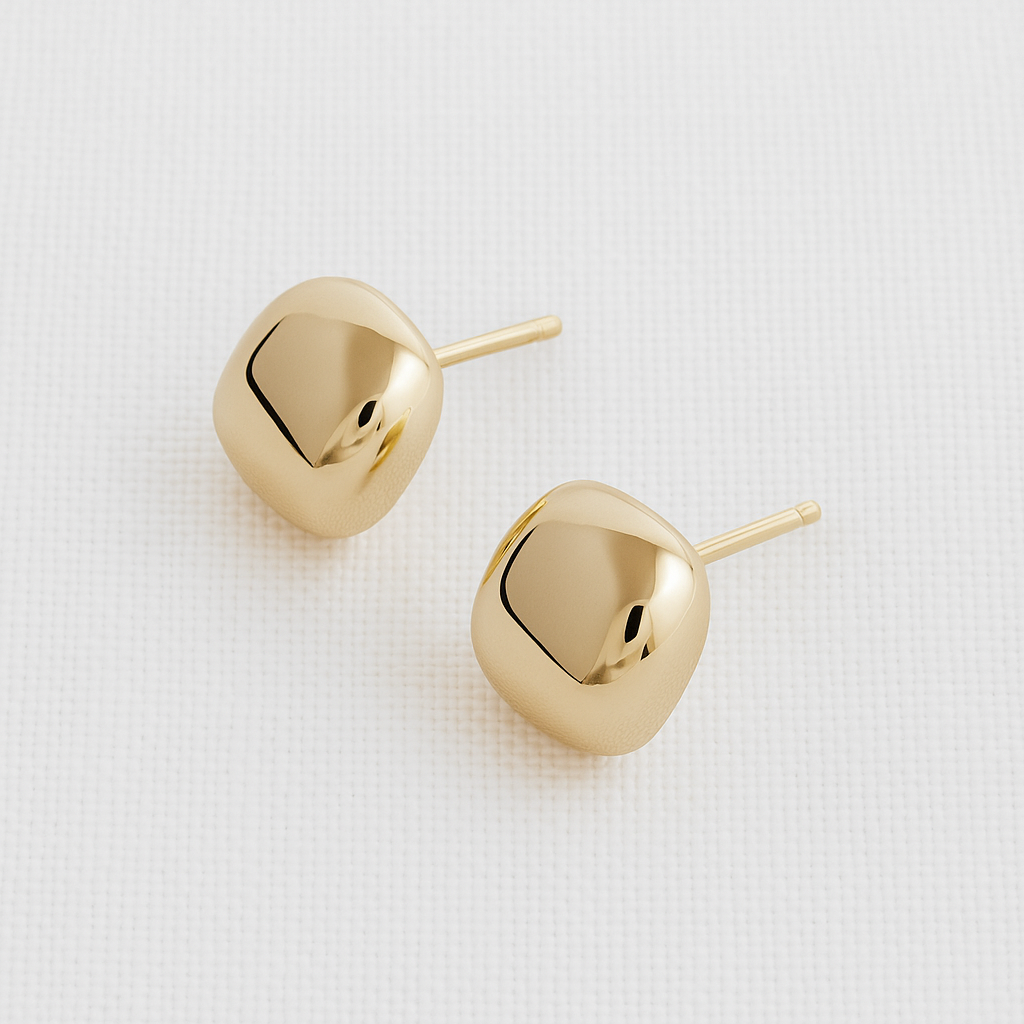 Soft, sculptural, and luminous — these gold-plated studs bring effortless elegance with their rounded modern shape and mirror finish made to shine every day.