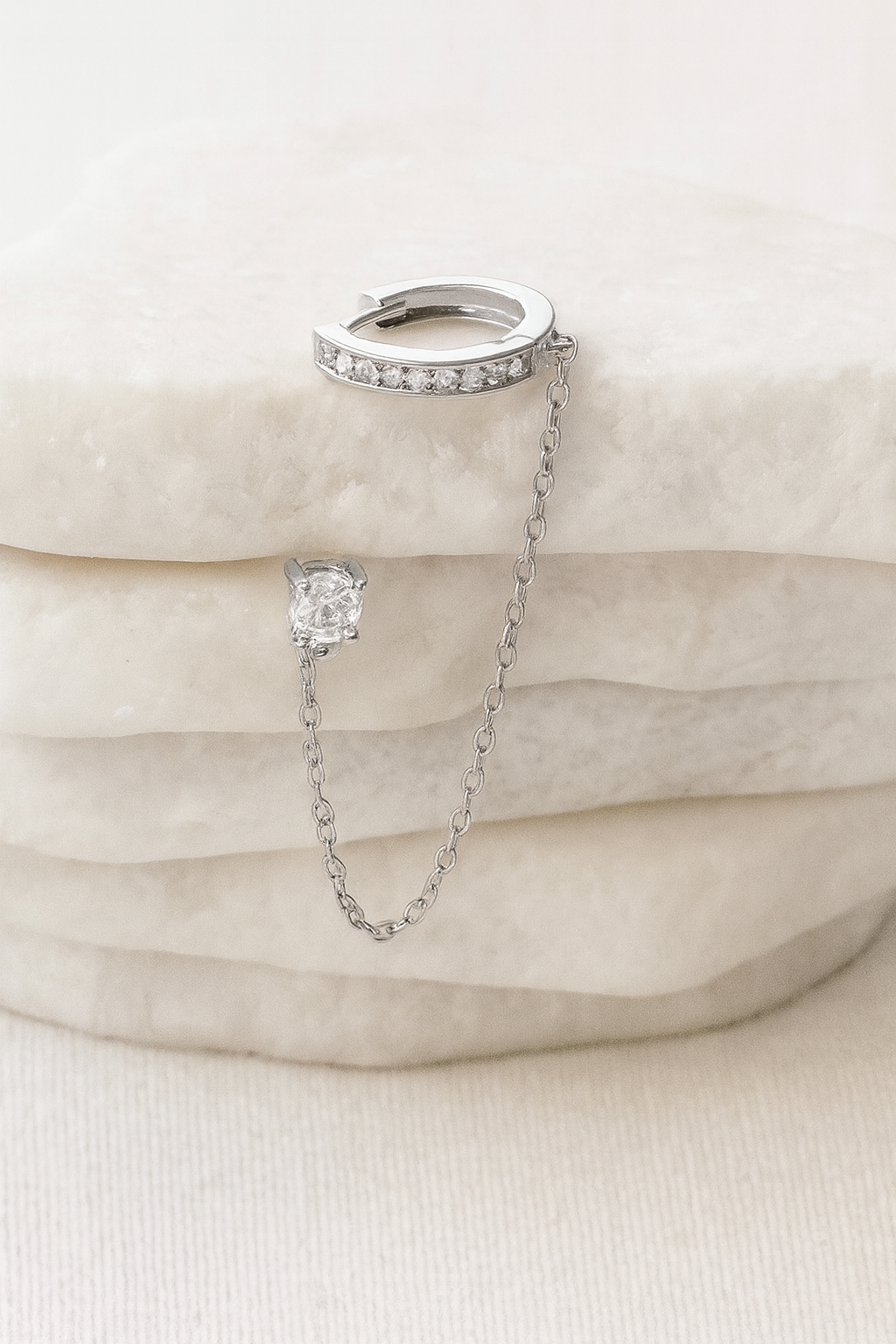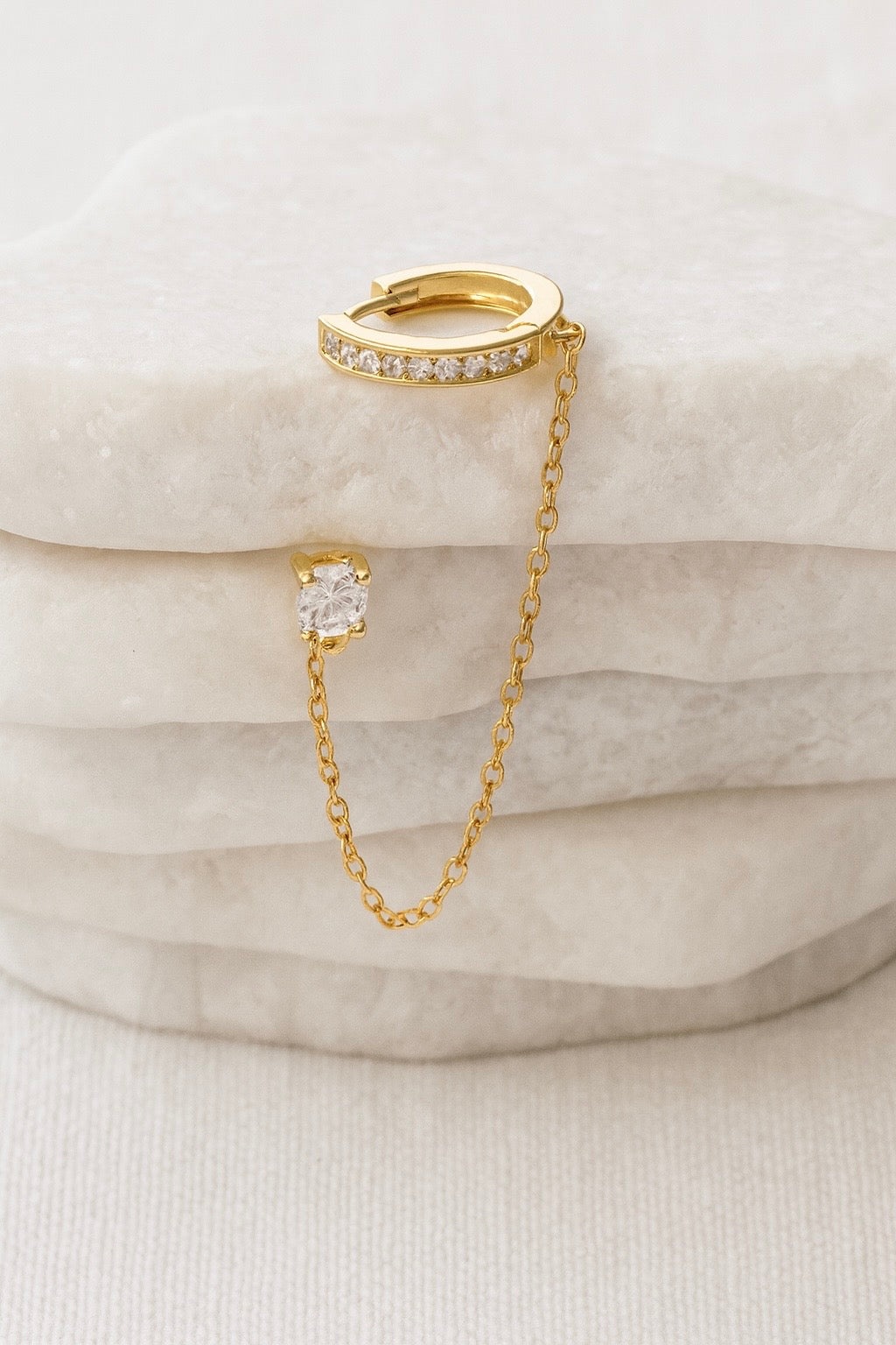Effortlessly chic — the Tatum Stud Huggie Earrings combine a sleek huggie hoop and sparkling stud linked by a delicate chain. Designed to add movement and edge, this pair brings a modern twist to classic elegance.