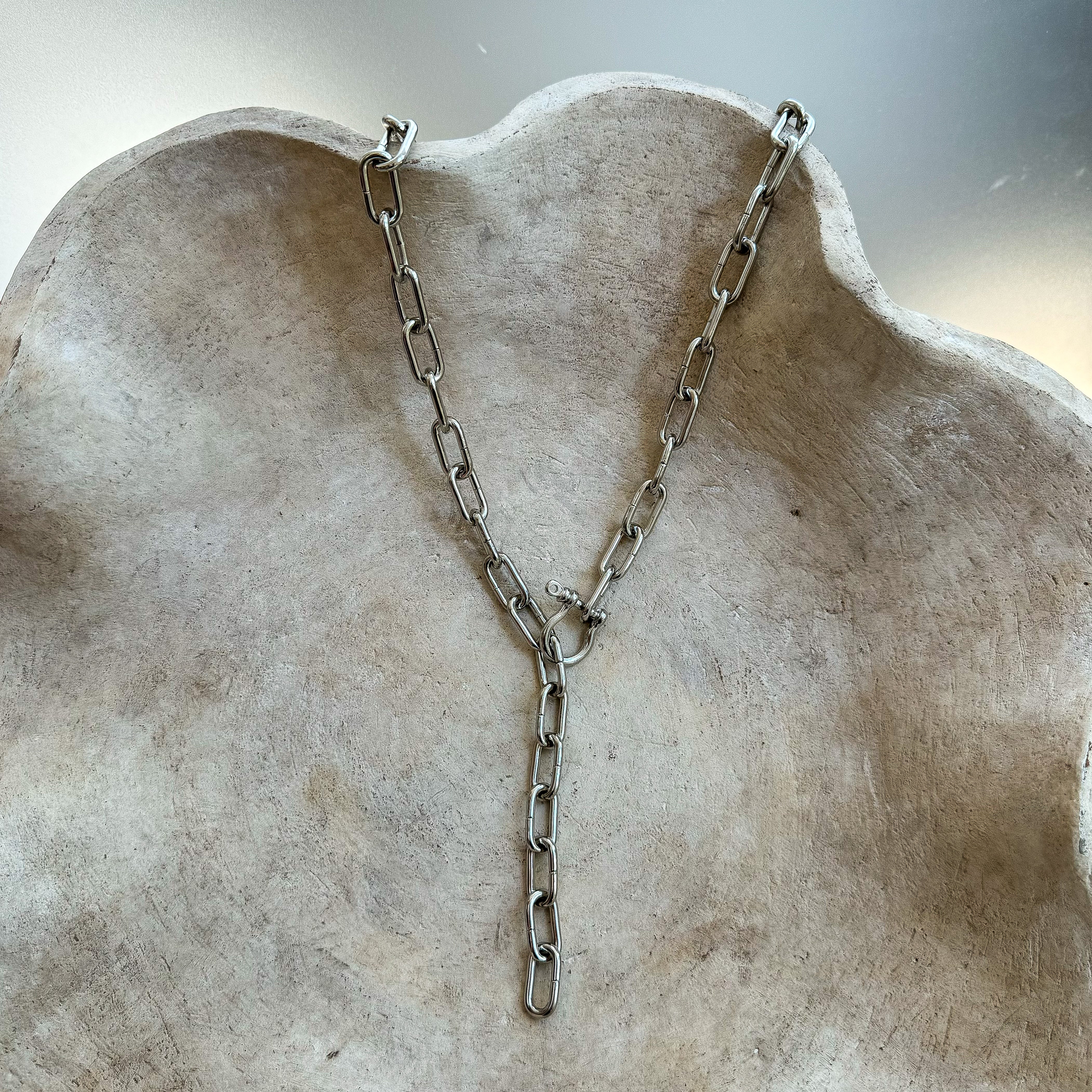 The Delilah Necklace is a sleek silver-plated Y-chain that elongates the neckline with effortless style. A versatile layering piece for chic day-to-night looks.