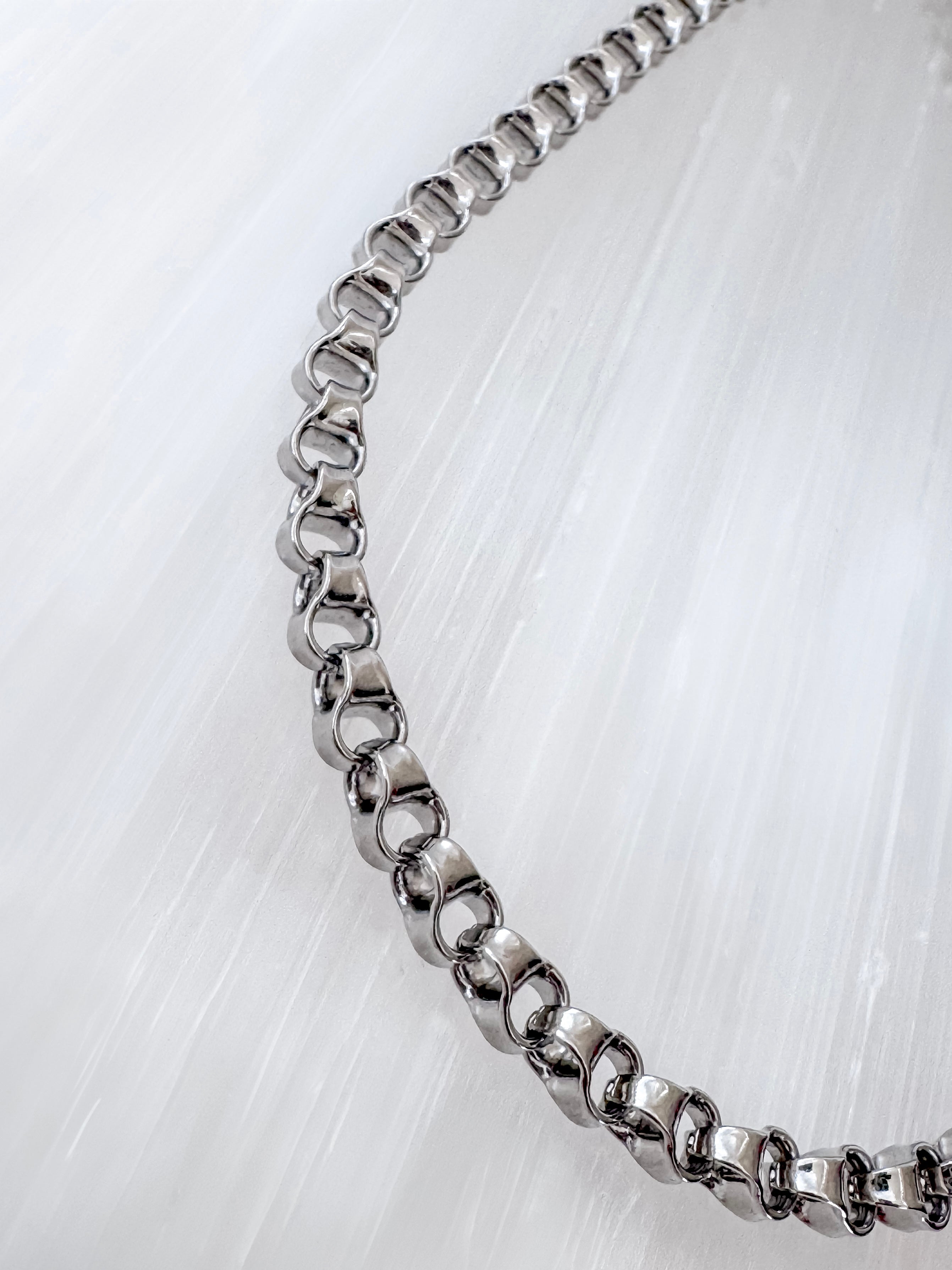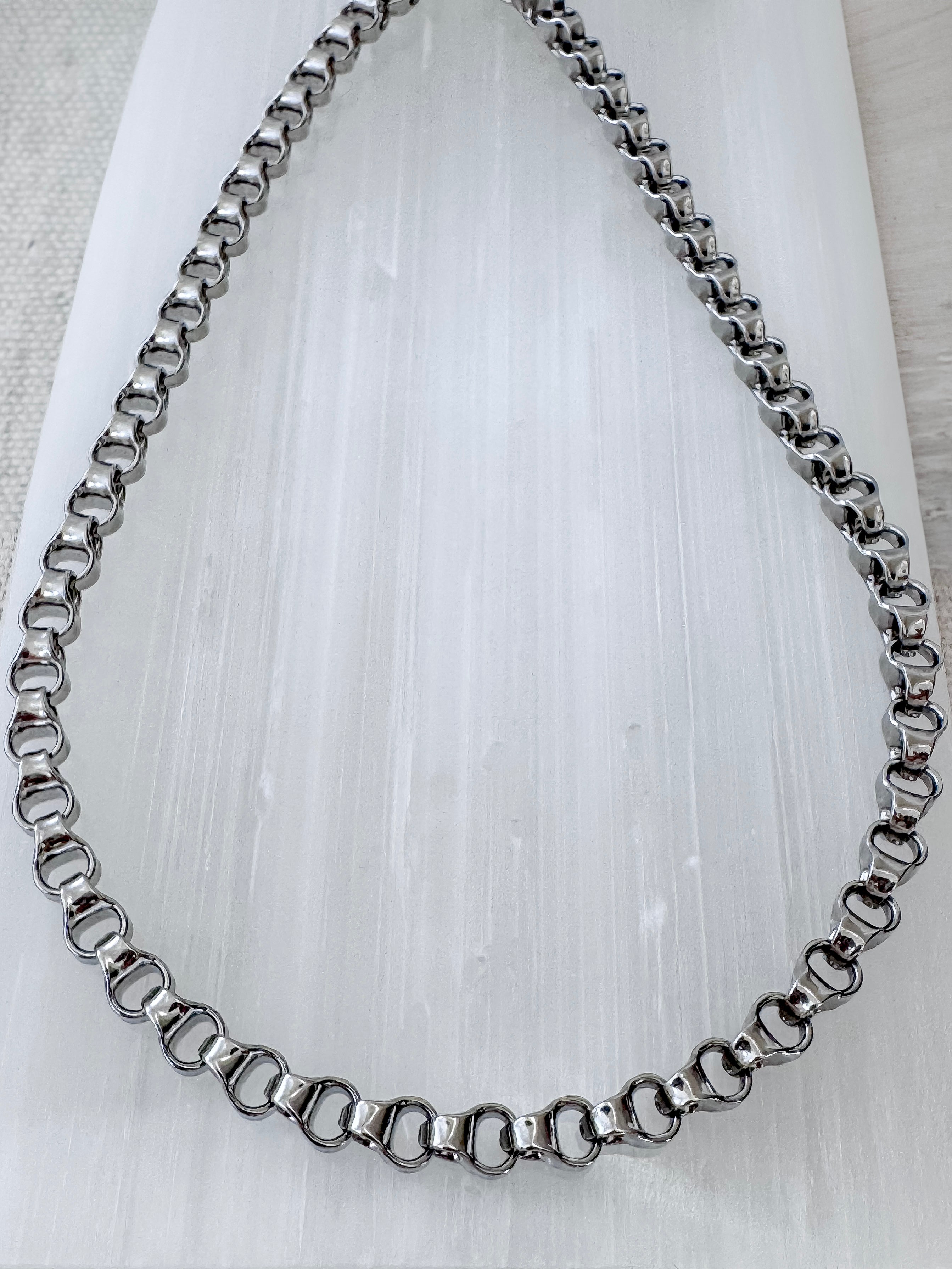 The Lorien Necklace is a bold chain with chunky rounded links. A statement piece that brings strength and edge to any layered look.