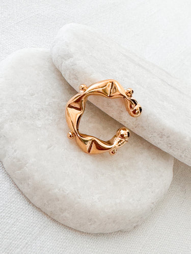 The Sculptura Ear Cuff is a bold, sculptural piece designed to elevate your ear stack. Featuring fluid, organic curves accented with polished bead details, it creates a statement look without the need for a piercing. Lightweight and comfortable, it’s a modern twist on everyday gold jewelry.