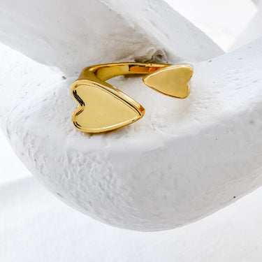Fall in love with our Doble Heart Ring! This unique and playful accessory features not one, but two hearts, symbolizing double the love. Express your fun and playful side with this quirky and stylish piece!
