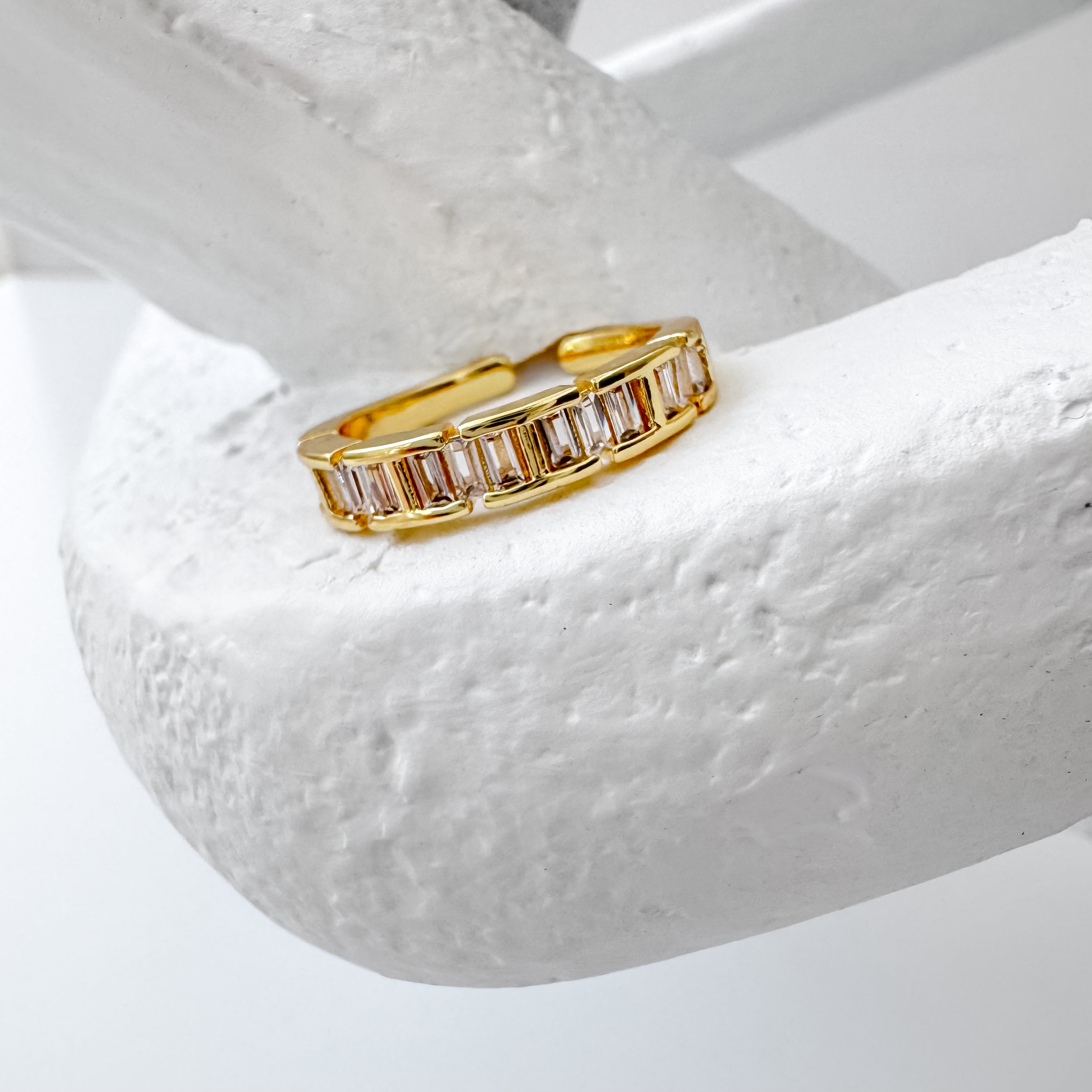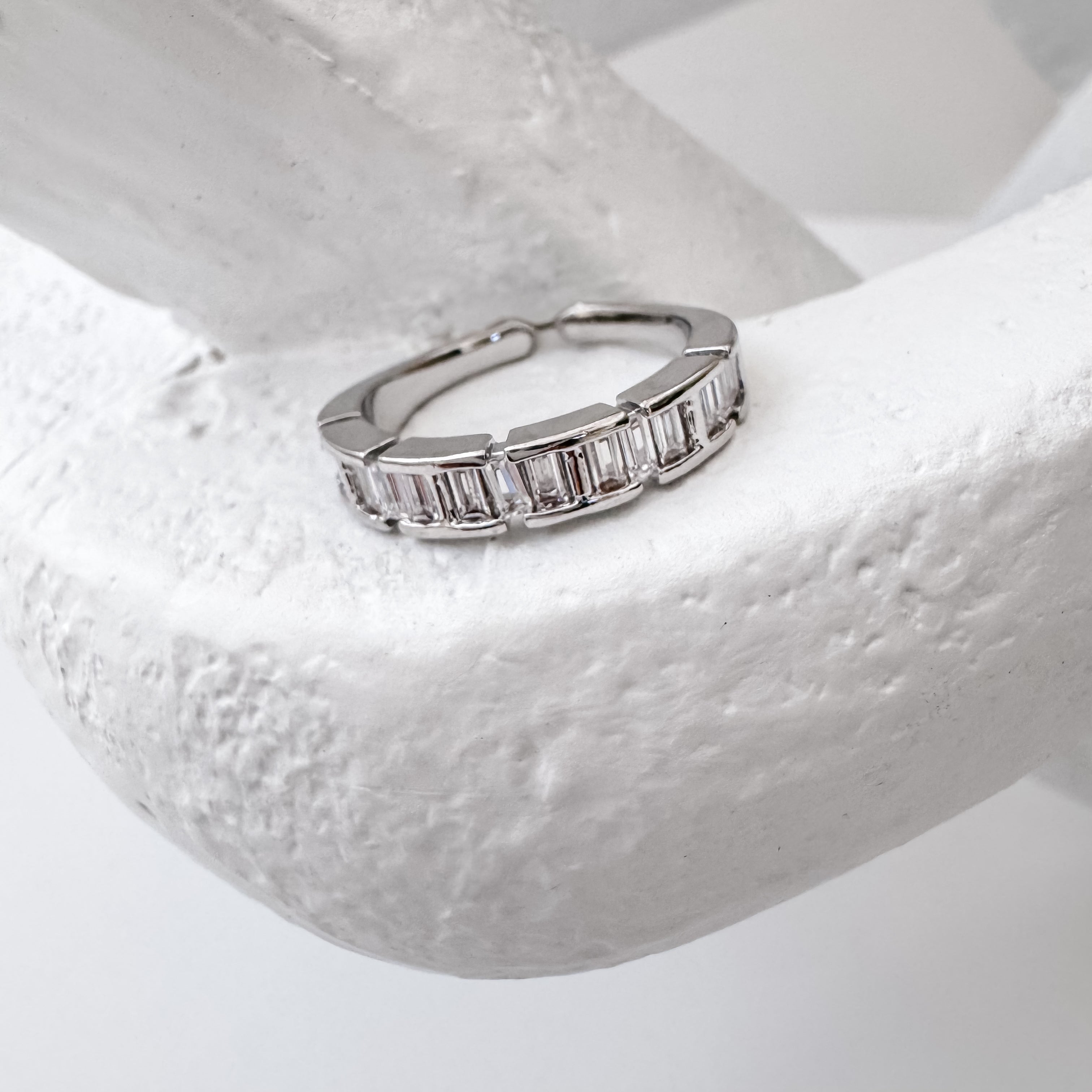 A timeless band that sparkles from every angle — the Aine Ring features meticulously set rectangular-cut stones that catch and reflect the light beautifully. Elegant yet versatile, it’s the perfect piece to elevate any occasion.