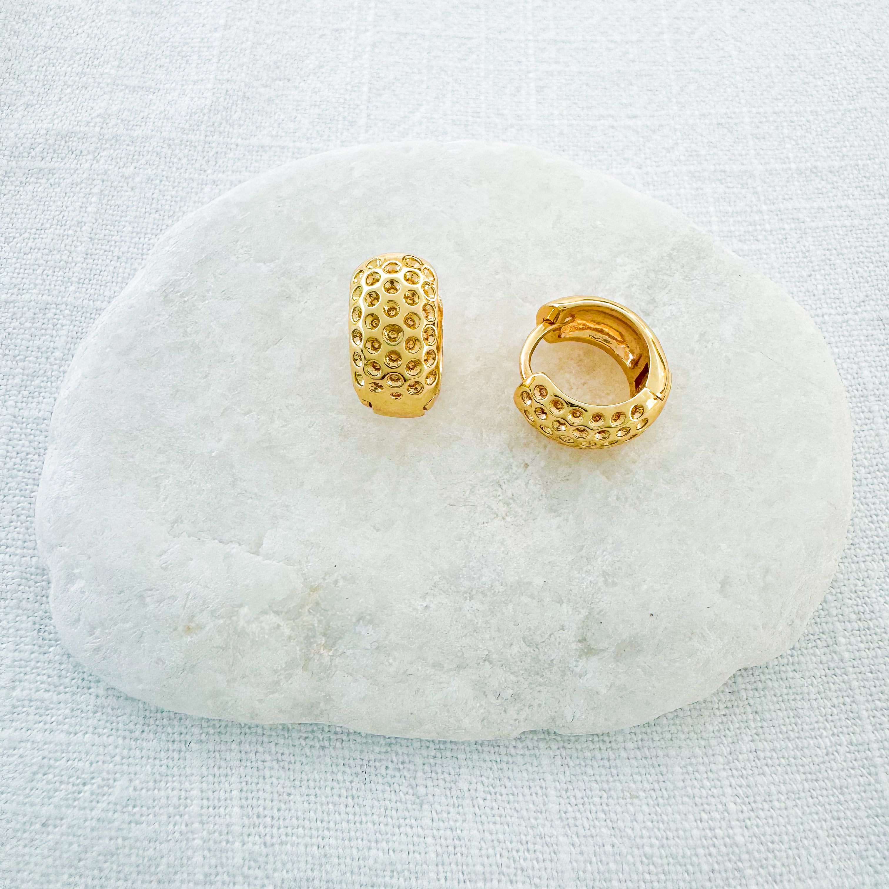 Sculpted shine, everyday elegance — the Alix Huggie Earrings feature a gold-plated hoop that’s lightweight, nickel-free, and perfect solo or stacked.