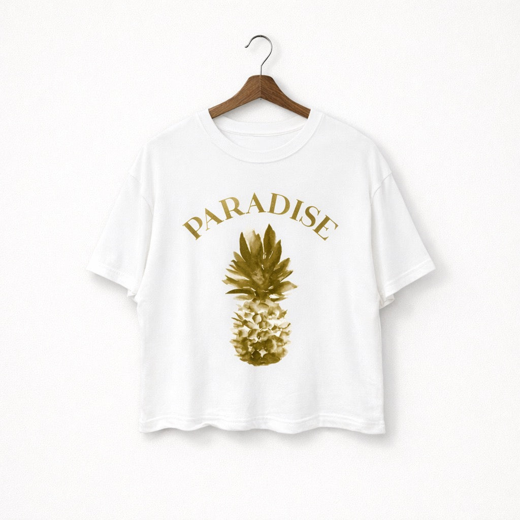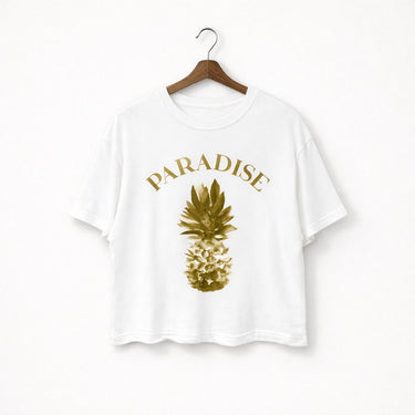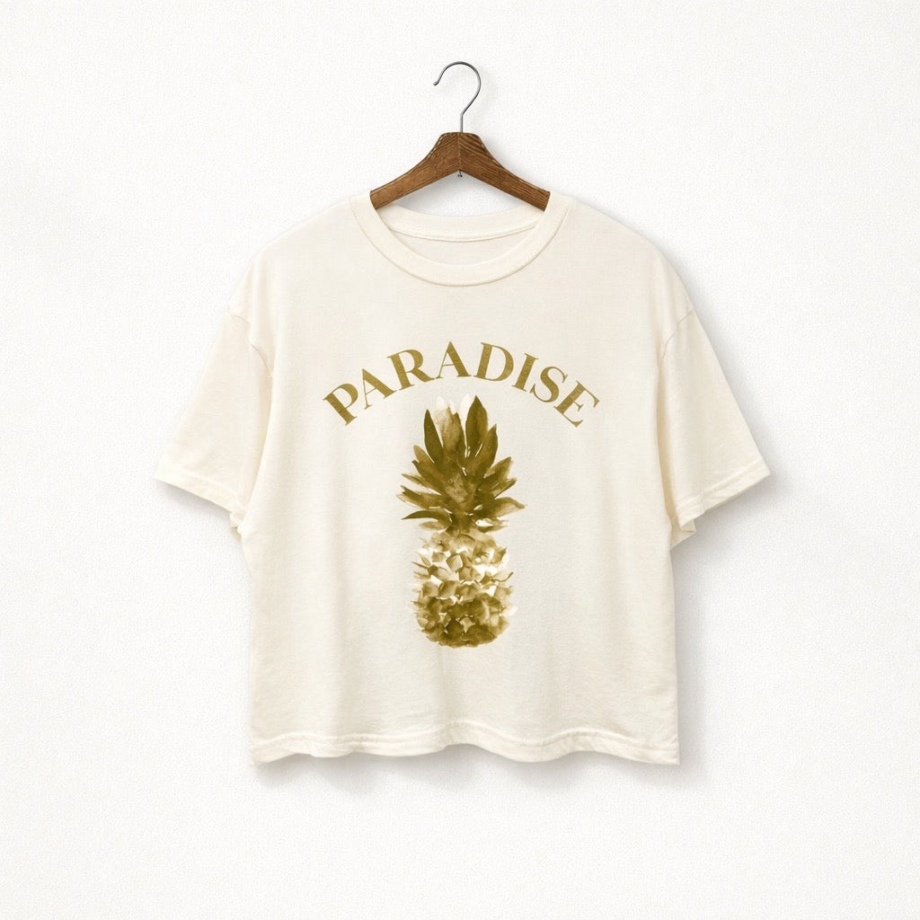 Soft ivory tones meet a golden pineapple graphic for the ultimate laid-back statement. The Paradise Tee feels effortless, sunny, and just the right amount of vintage.