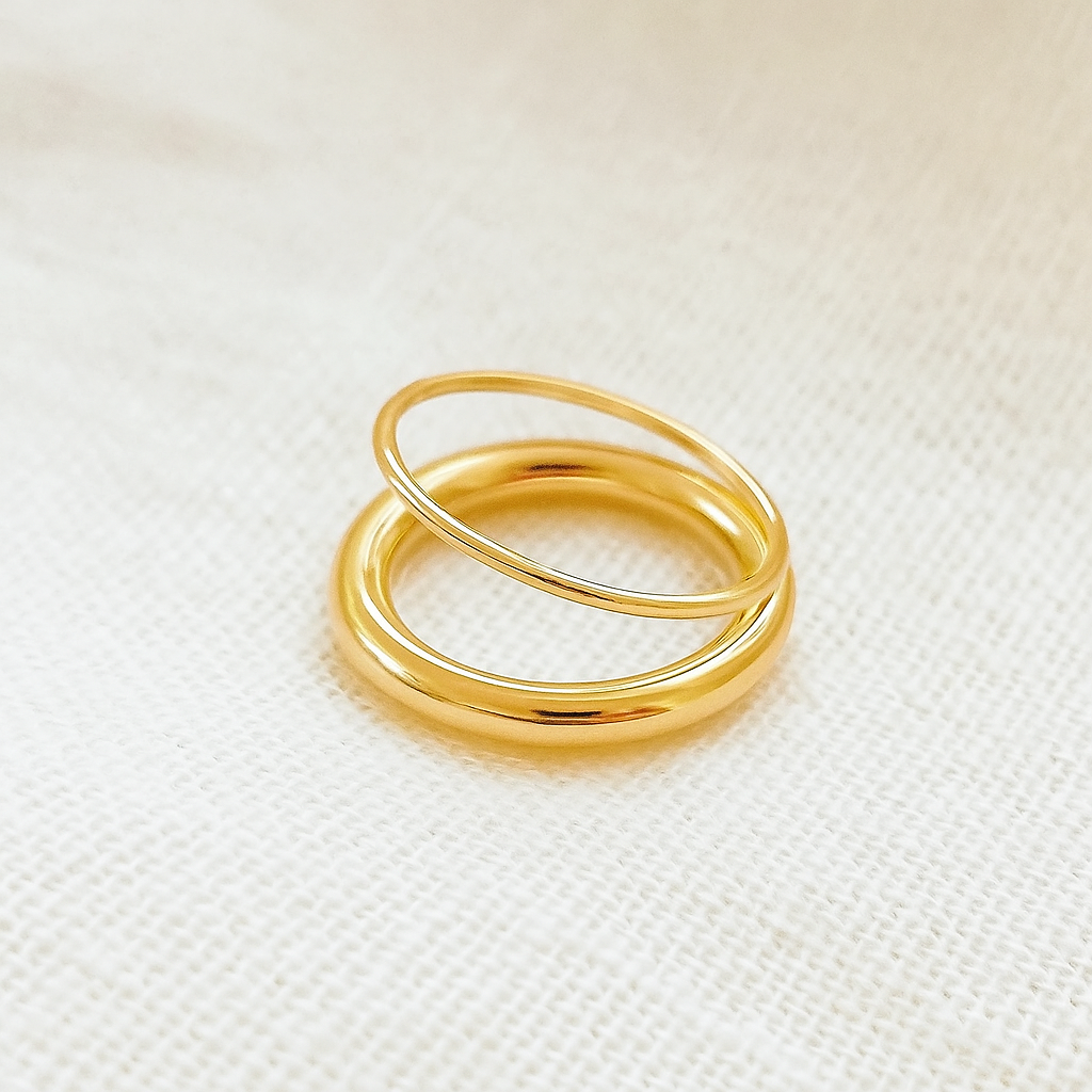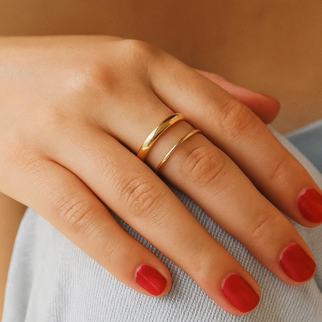 Minimalist yet bold, the Infinite Loop Ring is designed with two polished gold-plated bands that intertwine seamlessly, symbolizing continuity and timeless elegance. Lightweight and versatile, it’s perfect for everyday wear or as a statement stacked piece.